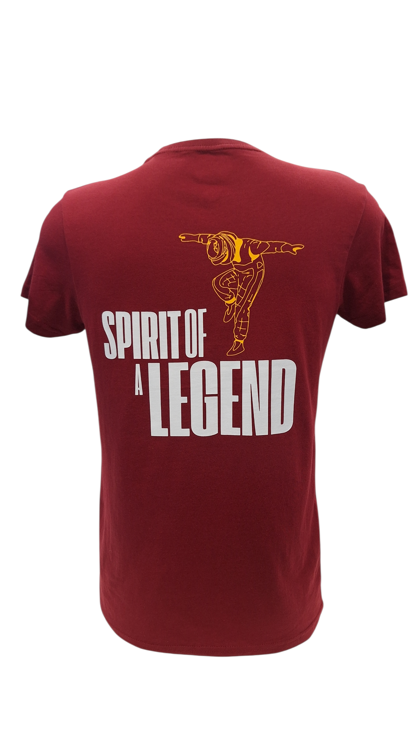 Camiseta con nuevo diseño original, inspirada en los mundiales conseguidos por el piloto asturiano, representado por una de sus poses más características de victoria y la frase “SPIRIT OF A LEGEND”.